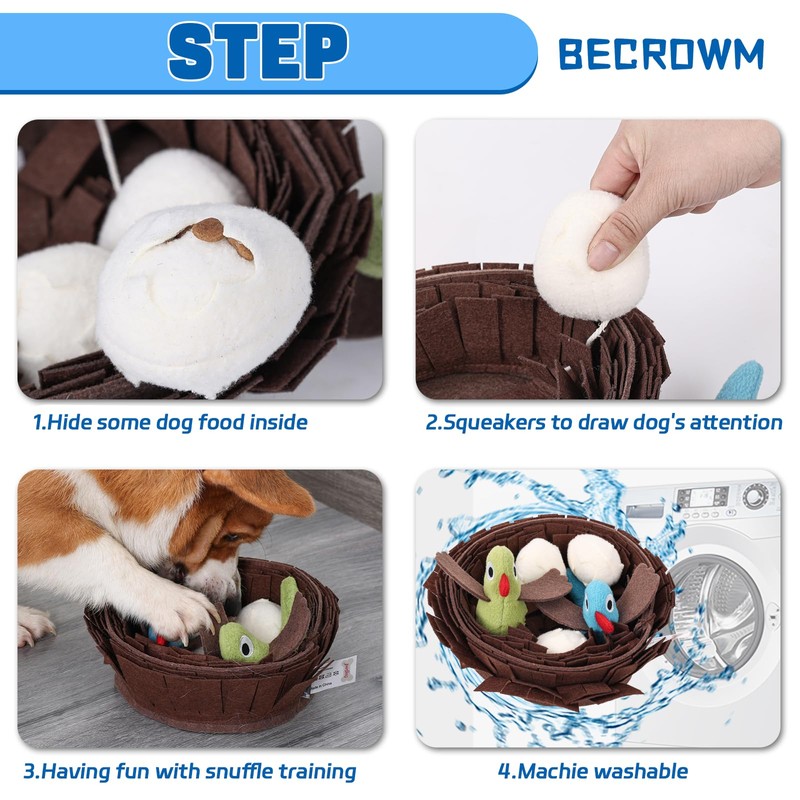 BECROWM Plush Large Dog Toy with Squeaker and Crinkle Paper, Interactive Puppy Chew and Teeth Cleaning Toy, Pet Toys for Small, Medium and Large Dogs (Nest)