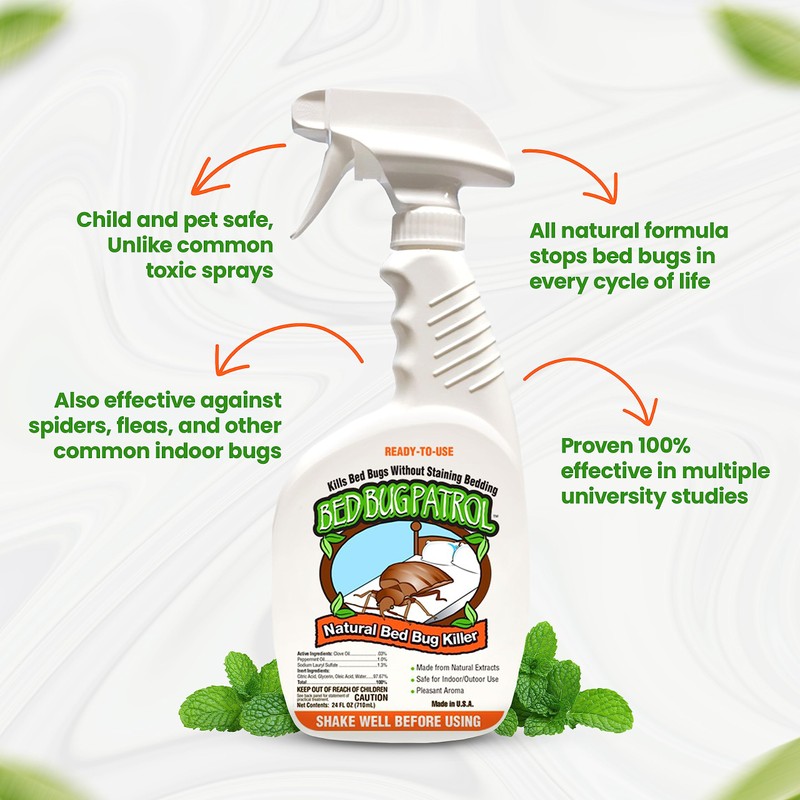 - OUR PRODUCT IS 100% PLANT-BASED & NON-TOXIC: — Bed Bug Patrol is all-natural Made in the USA, using non-toxic ingredients (including natural Peppermint Oil and Clove Oil). Child and Pet Safe - No more worries about toxic fumes or dangerous chemicals coming in contact with you, your family, and your pets. Our product is so safe that it's on the EPA's non-pesticide list of natural ingredients that are very effective at stopping bed bug infestations in their tracks!