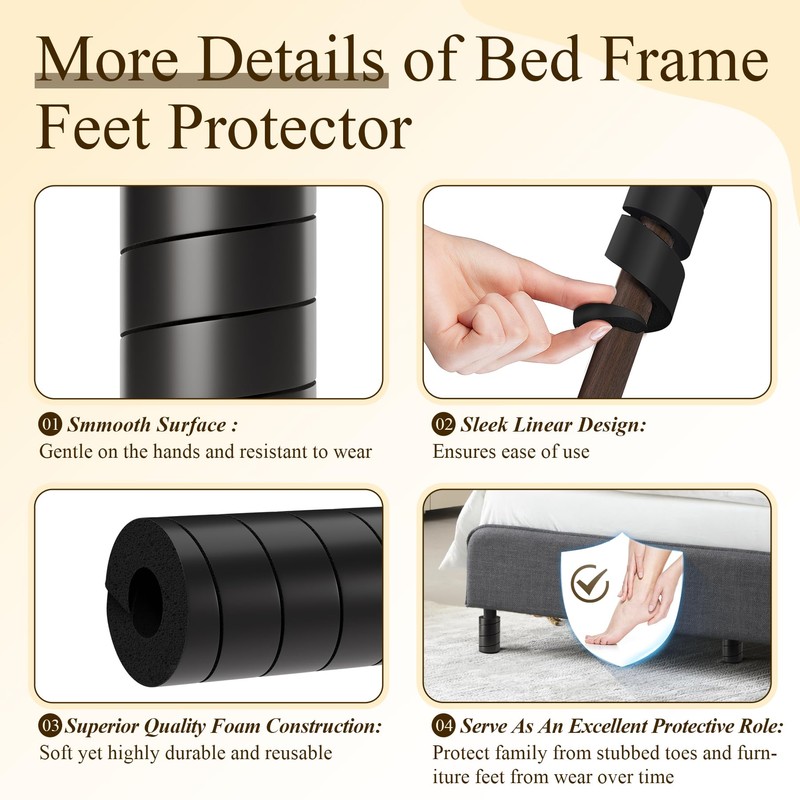 Product name: Bed Foot Guard/Bed Frame End Cap/Toe Guard for Bed Frame/Furniture Foot Cover/Bed Feet Safety Sleeve/Frame Corner Protector/ Bed Frame Foot Covers/ Bed Leg Impact Bumper Guards/Collision-Resistant Bed Feet Covers/Foam Protector Padding/Bed Leg Pads.