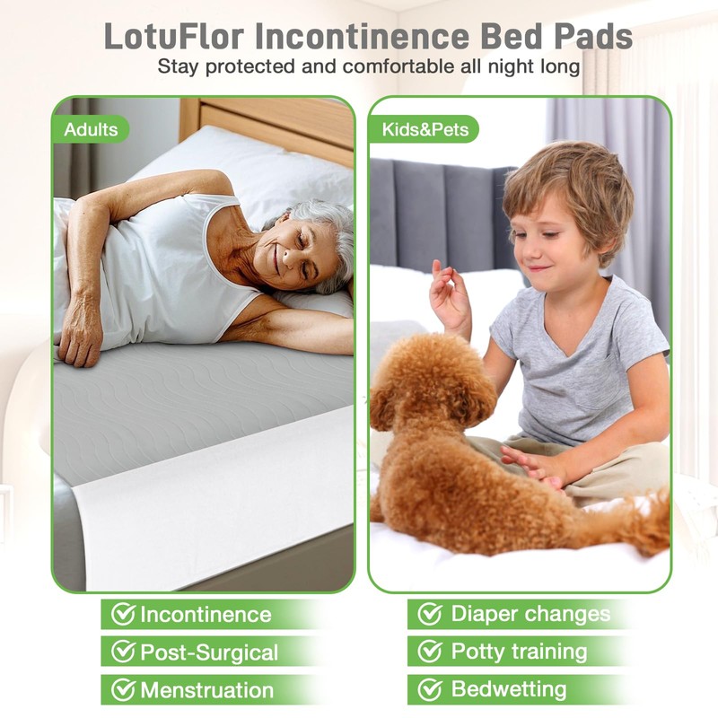 • 2x Fast-Drying Comfort: the incontinence bed pads features breathable, ultra-absorbent layers and moisture-wicking fabric to reduce drying time by 50%, maintaining skin comfort and keeping the bed clean and dry