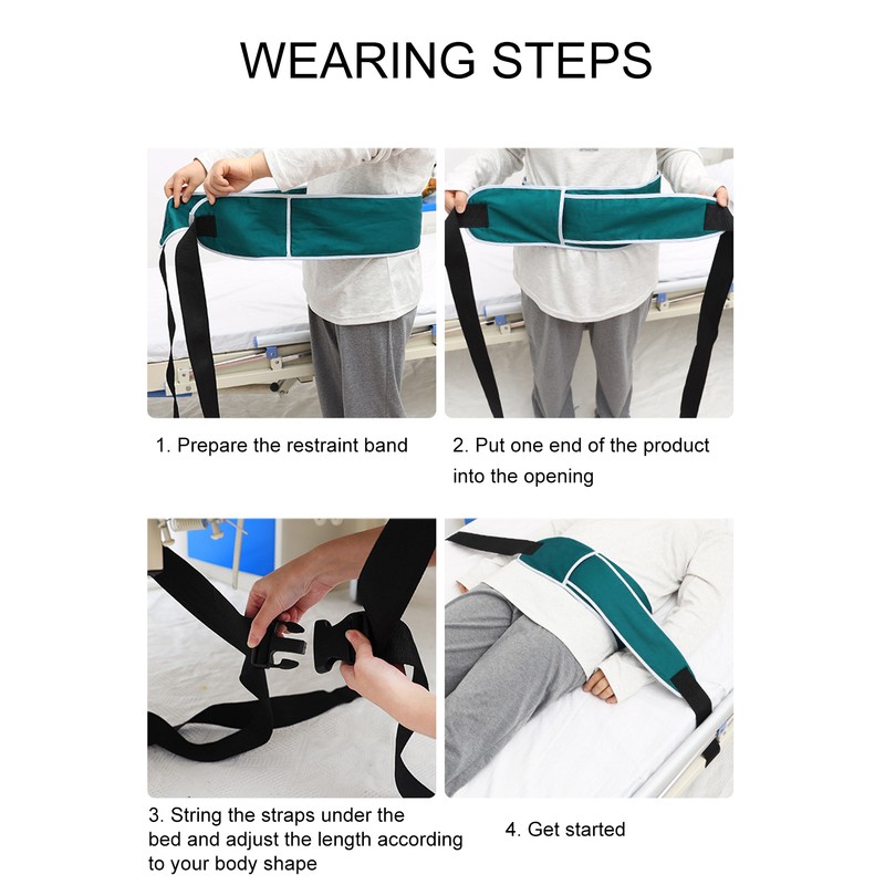1、Function: Restraint belt is used for the protective restraint and fixation of the patient's waist and abdomen to avoid falling from the bed. 2、Has Room For Movement: Avoid getting up and falling out of bed, you can turn left and right, there is room for movement, and will not curb your body. 3、Good Fabric: Adopts high quality fabric, strong and wear resistant, good pulling force. Widened and thickened design, binding process. 4、Multi Purpose: Can be used for bed and wheelchair, suitable for postoperative patients, restless patients, bedridden elderly, etc. 5、Characteristics: Exquisite workmanship, dense sewing, easy to put on and take off, washable and reusable, durable for use.