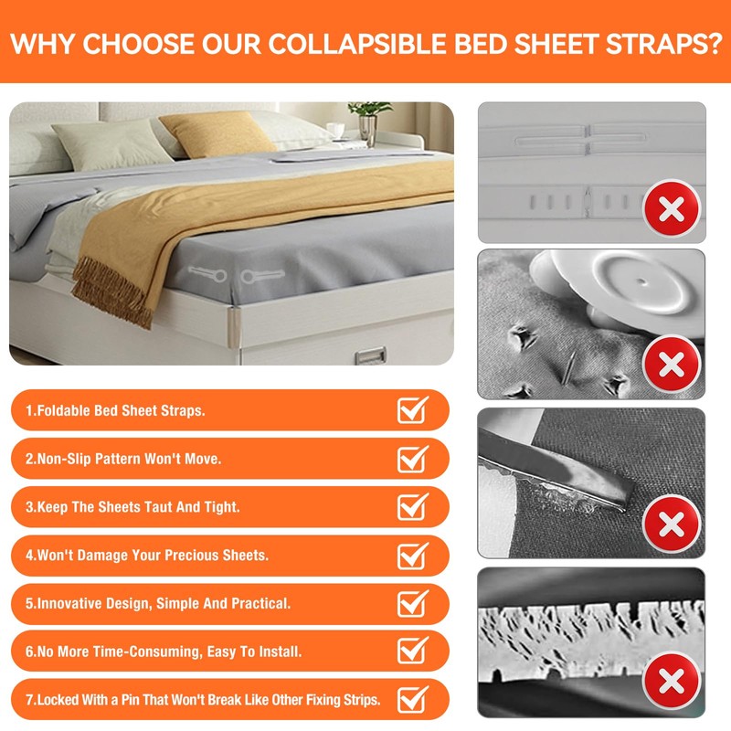 - FOLDABLE BED SHEET HOLDER: the ultimate lock sheet holders solution for easily securing firm and tight sheets - the compact, clutter-free design outperforms traditional bed sheet clips and is your first choice for easily securing tight sheets. please note, however, that the bed sheet holder may not be suitable for adjustable beds, or waterproof coated sheets and silk sheets, and it is suitable for mattresses from 4.34in/11cm to 11.8in/30cm thick to ensure the best possible experience