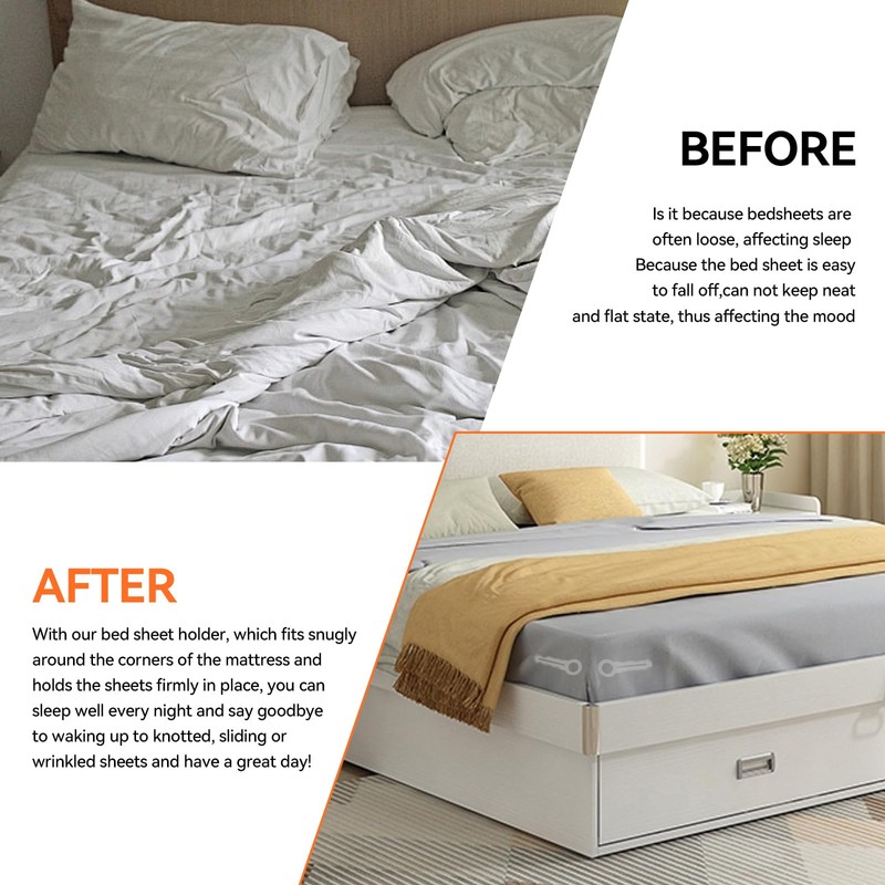 - KEEP YOUR BED SHEETS FIRM AND COMFORTABLE: Our bed sheet holders are made with very strong and reliable physical grade fixing technology. Are you tired of your sheets getting knotted, sliding or wrinkled, affecting your sleep and mood? With our bed sheet holder, it fits snugly around the corners of your mattress and holds your sheets firmly in place, so you can get a good night's sleep every night, no more waking up to knotted, slipping or wrinkled sheets, and have a great day