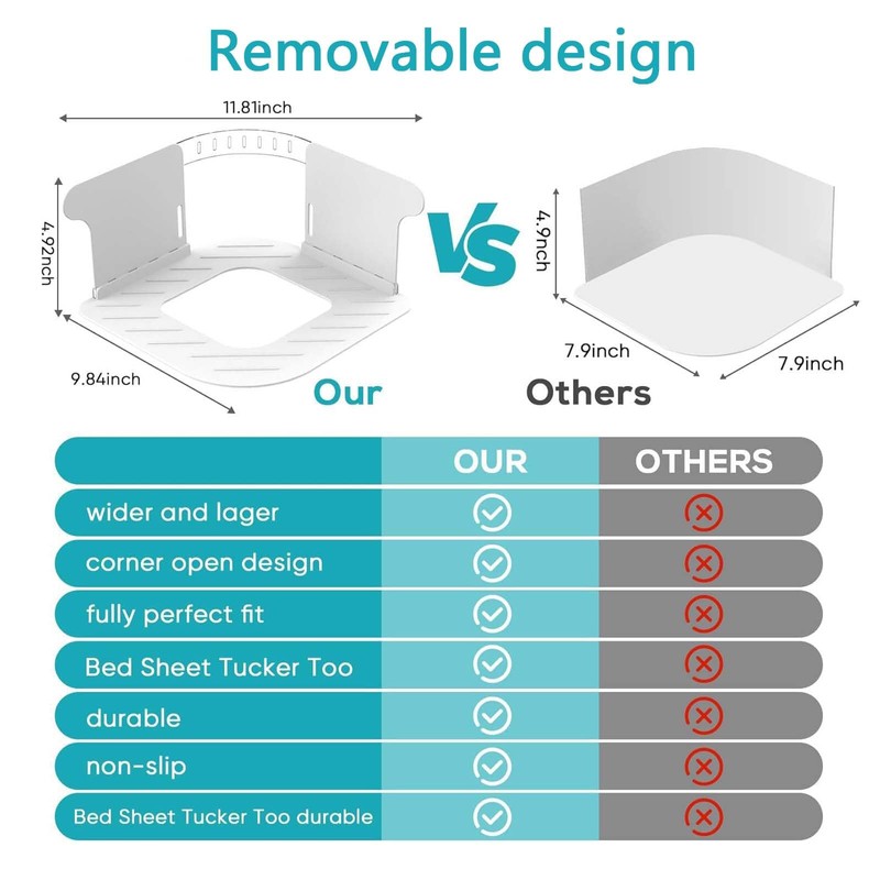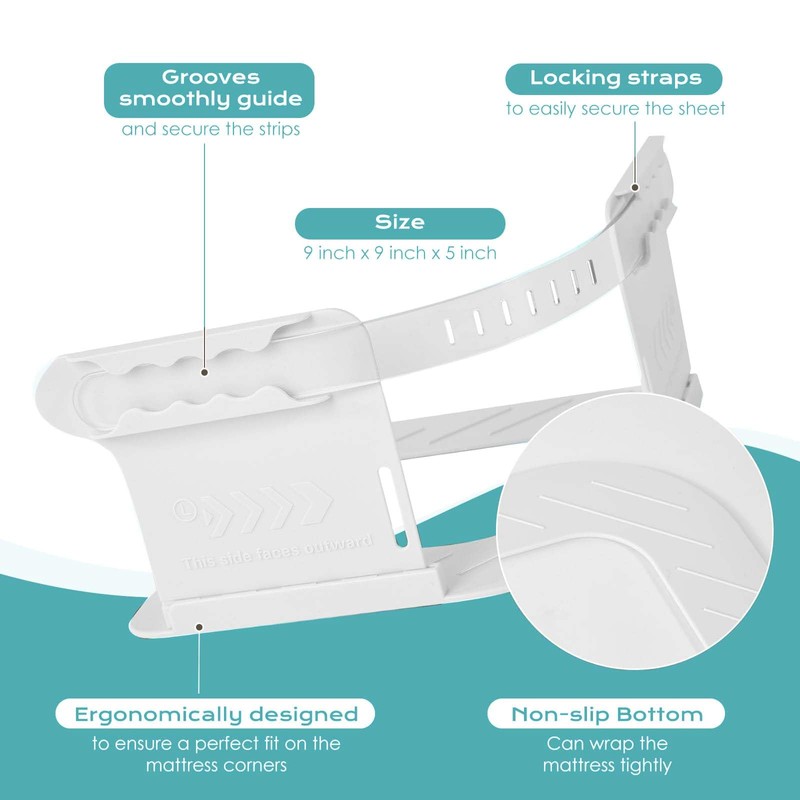 - 🛠️ One-Time Setup, Hassle-Free Use Install once and forget the fuss. Unlike straps, clips or bands that require constant adjustment, our sheet holders stay fixed after the initial setup. Changing sheets is easy—no need to lift or flip the mattress. One person can do it with ease.