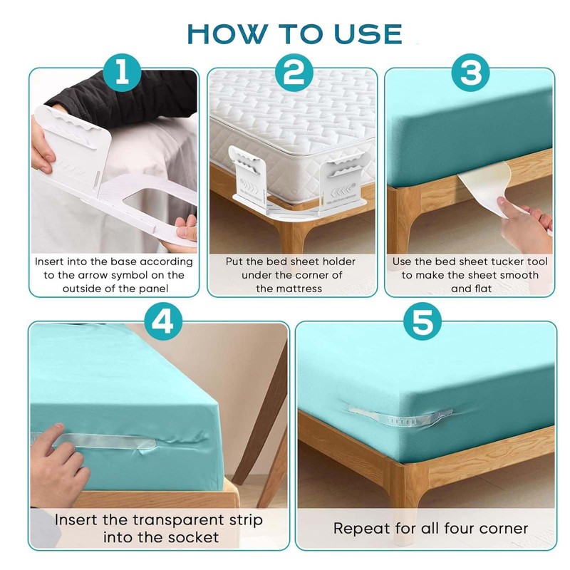 - 🛏️ Fits All Mattress Sizes Designed to fit most mattress and sheet sizes—from single to king. These heavy-duty holders work without damaging your sheets and don’t require clips. Ideal for home, guest beds, or Airbnbs.
