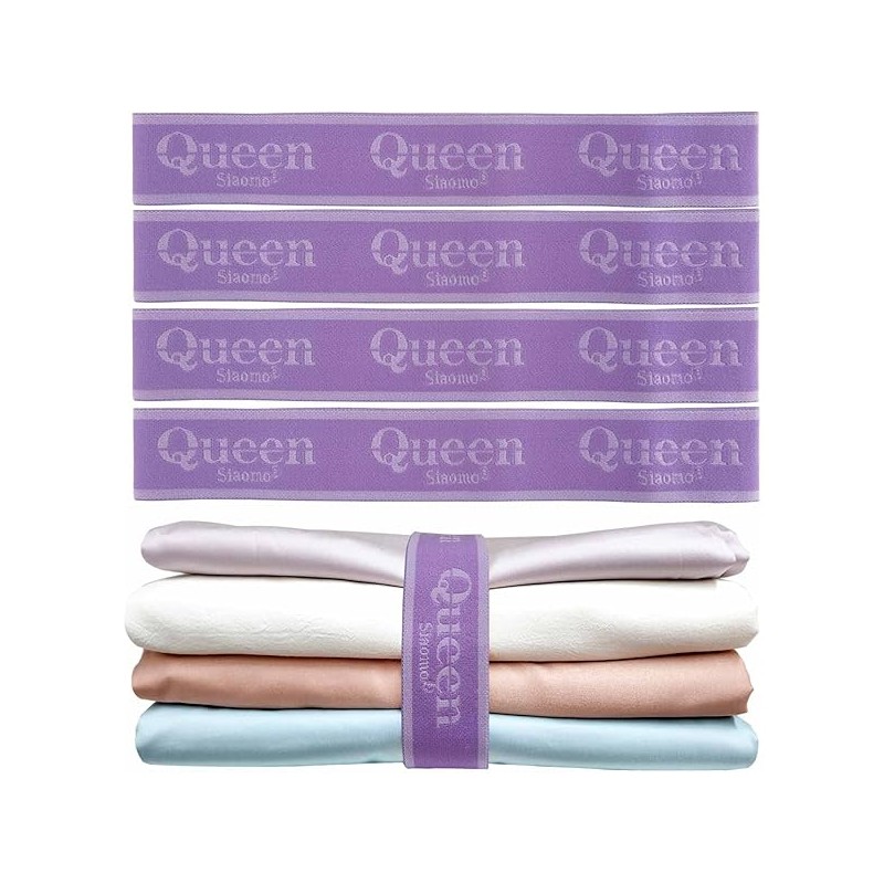 Bed Sheet Organizer Bands, Sheet Set Storage Size Marking Bands, Elastic Bedding Sheet Straps Wraps for Organizing Linen Closet(Queen 4PCs | Purple)
