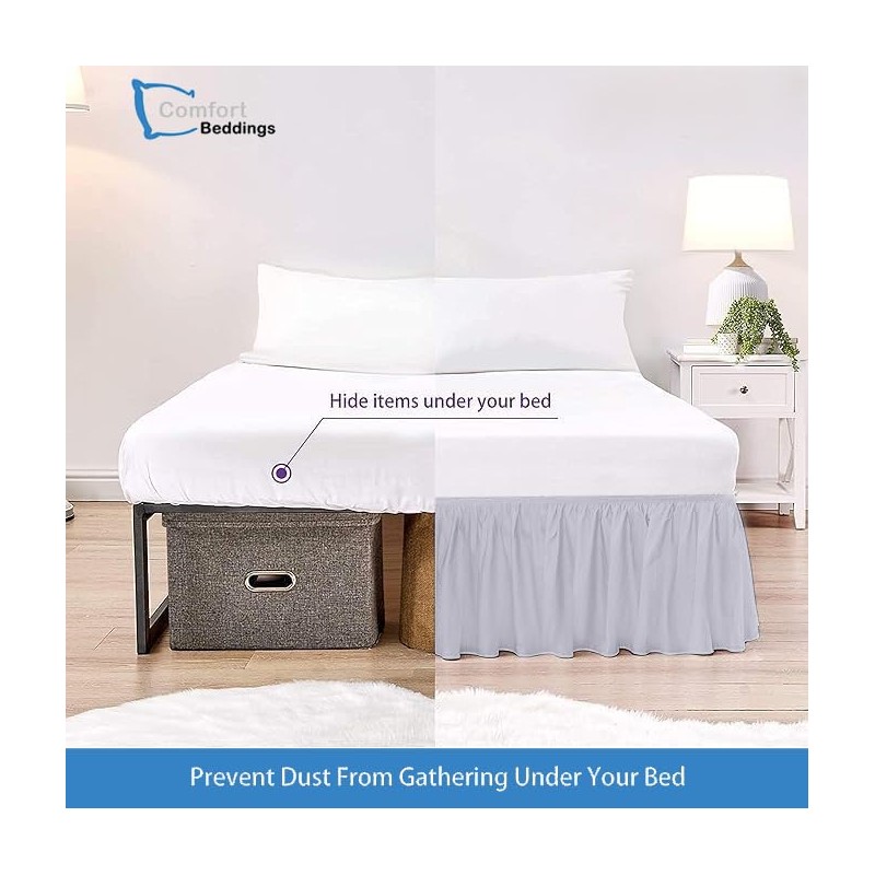 Bed Skirt Queen Size Ruffle Style by Comfort Beddings 100% Cotton Blend Fabric, Premium Tailored Fit 1pc Dust Ruffle Bedskirt Queen Size 16" Drop Length Silver Solid