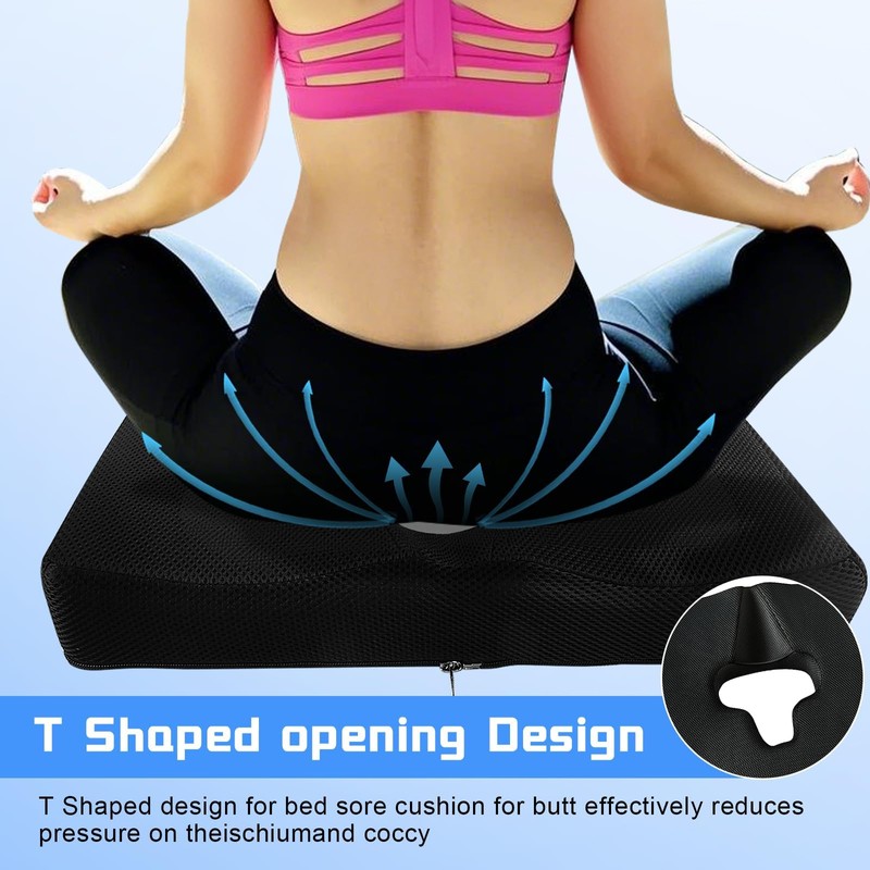 Bed Sore Cushion for Butt, Breathe Freely Fiber Anti Bedsore Cushion, T Shaped Opening Triangular Slope Desig, Bedsore Pressure Relief Pillow for Elderly, Bedridden, Disabled (with Black Cover)