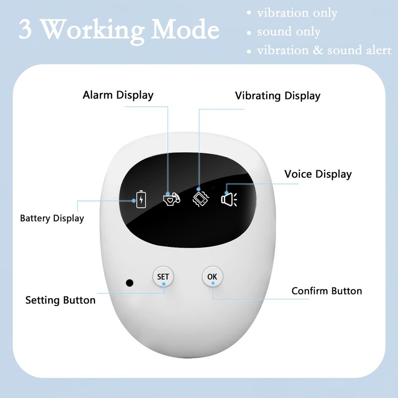 - Dual Alert System Sound and Vibration: Designed for deep sleepers, the alarm features a loud sound and gentle vibration to ensure your child wakes up immediately, even during heavy sleep.