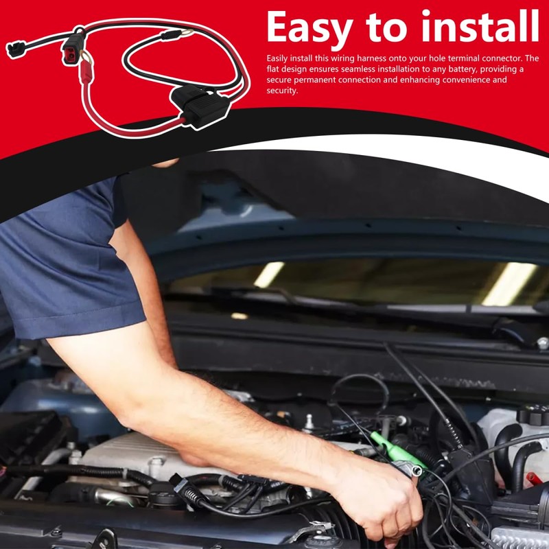 • 【Easy Installation】Effortlessly install this M10 Wire Harness to your smart battery chargers. The lie-flat design ensures seamless mounting to any battery, providing a secure and permanent connection for enhanced convenience and safety