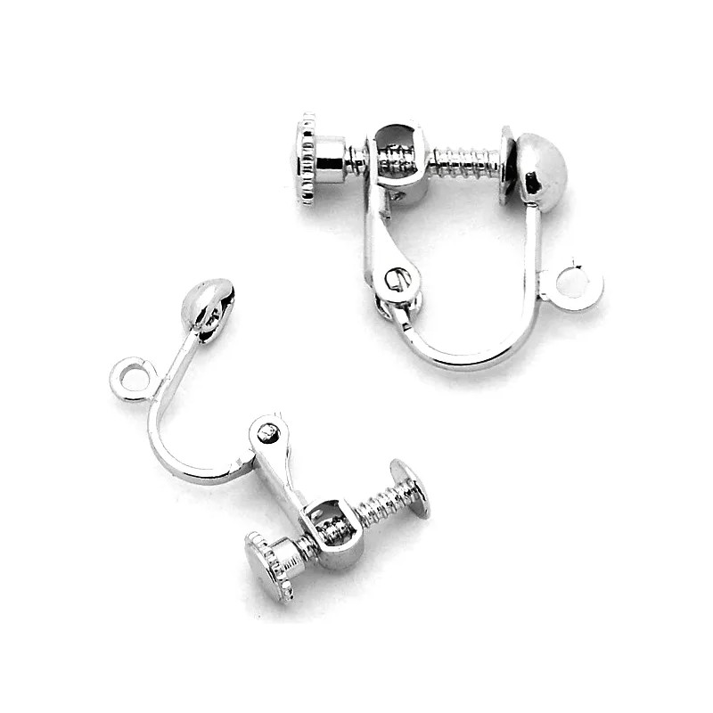 Bedazzlinbeads 2 Platinum Plated Brass Clip On Screw Back Earring Findings w/ Open Loop & Ball