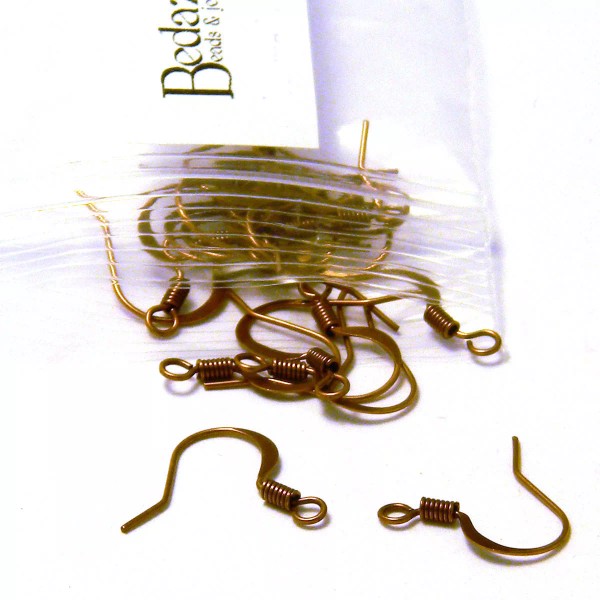 Bedazzlinbeads 20 Antique Copper Flat Fishhook Hook Earring Findings With Coil & Open Loop Ring