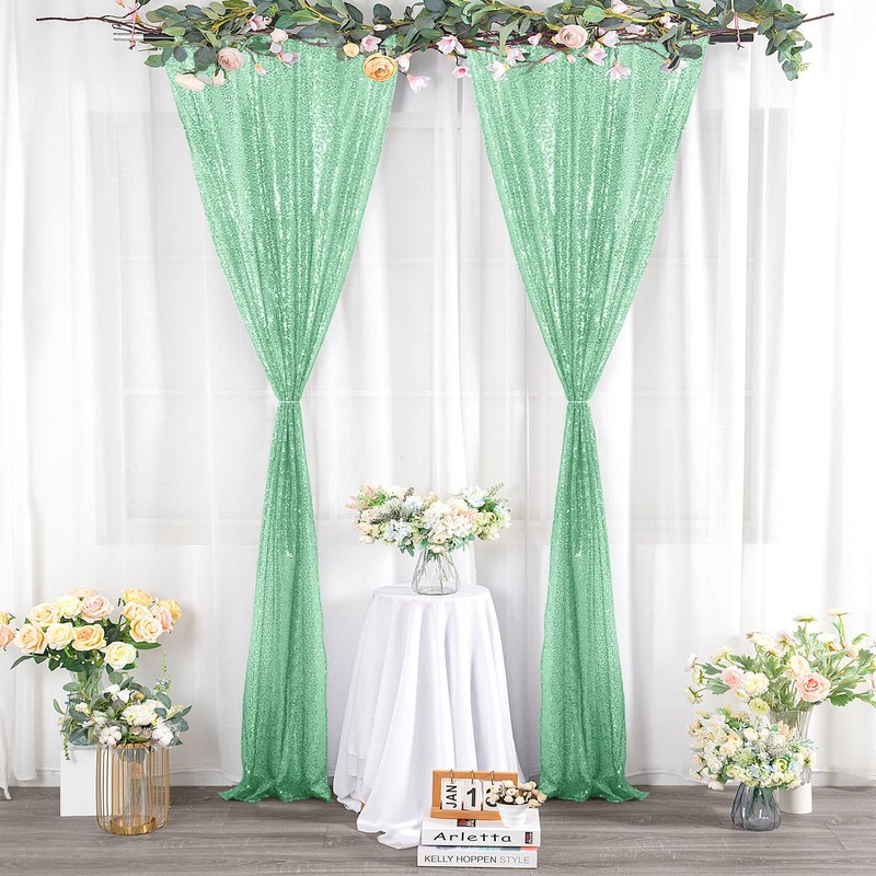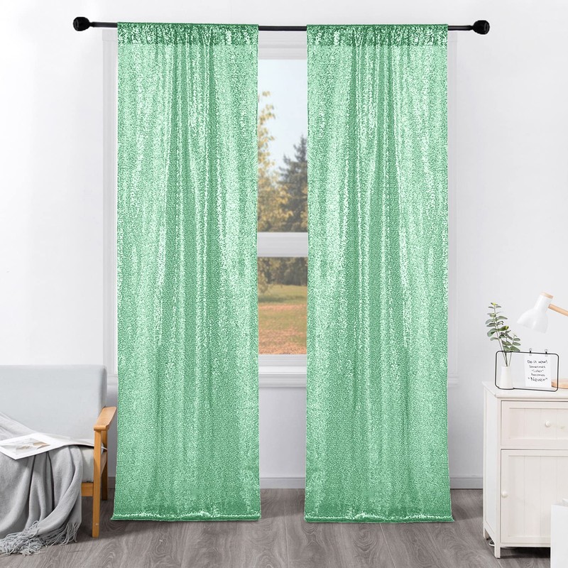 BEDDEB 4PCS Mint Green Sequin Backdrop Curtain, 2FTx8FT Glitter Backdrop Curtain for Christmas, Birthday, Wedding, Party Decoration