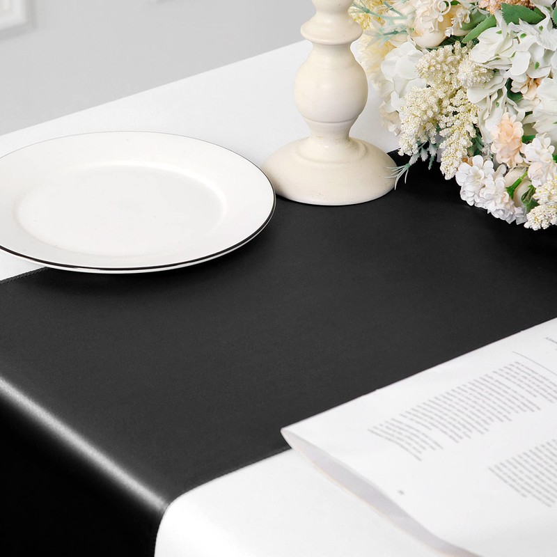 BEDDEB 5-Pack Black Satin Table Runner 12 x 108 Inch Long Table Runner for Wedding, Black Birthday Party Decorations, Premium Table Runners for Banquets, Graduations, Engagements