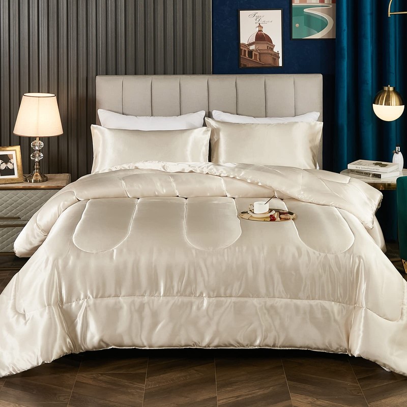 Bedding_Dreamer Satin Comforter Queen Silk Like Cream Comforter Silky Alterna...