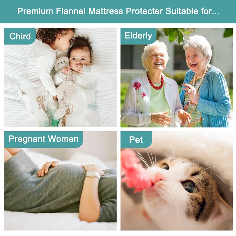 - 【Premium Flannelette Mattress Protector】: This Luxury bed protector is surfaced with 100% Brushed Cotton that offers an ultra-comfortable and delicate feel.
