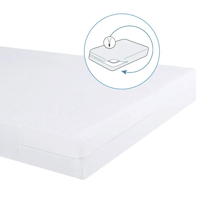 Bedecor Waterproof mattress protector with zip protection against liquids, insects and mites, mattress height 16 cm, cotton 90 x 200 cm