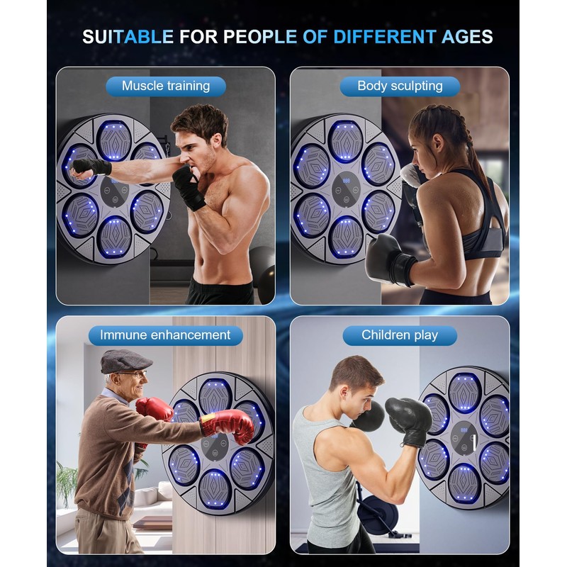 - Perfect for Everyone, Anywhere - Whether in your living room, bedroom, office or gym, this music boxing machine with gloves is ideal for men, women and kids to enjoy boxing and relieve stress at any time.