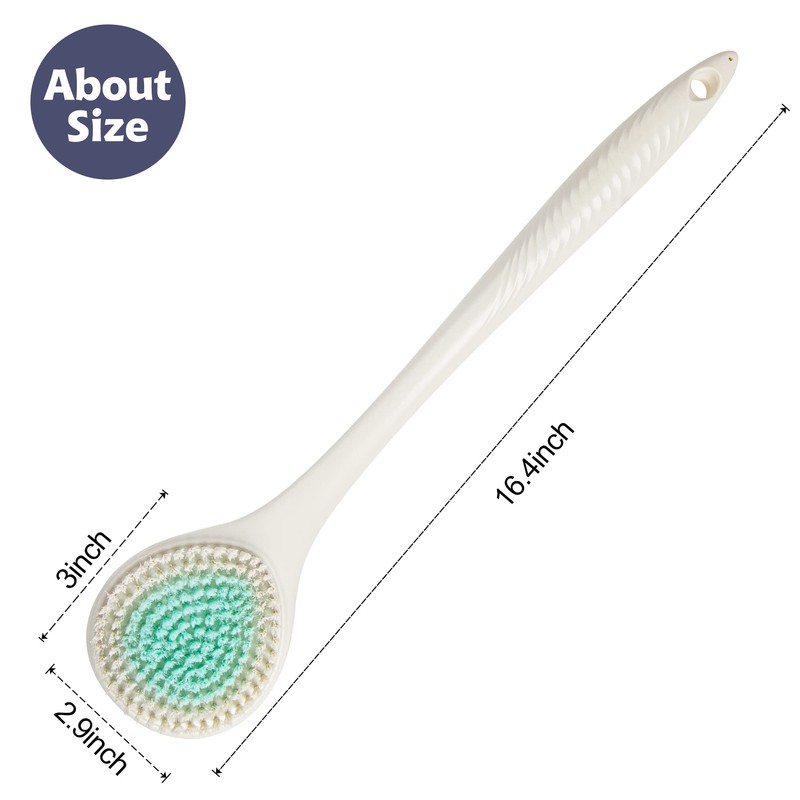 - 💕【Long handle, Cover More】To be a multipurpose back scrubber for shower, we upgraded the handle into 16.4 inches allows you can reach all places like your back, leg, arm and foot. Streamlined and ergonomic handle design make you to make your grip more comfortable. Our back shower brush owns high quality firm and sturdy handle which will makes it more comfortable to hold and use, better than just thin wire handle, reasonable thick handle make it easier to use.