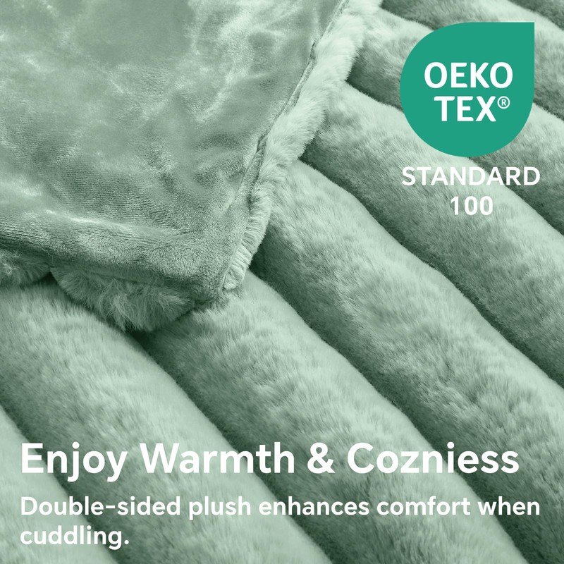 BEDELITE Faux Fur Throw Blanket for Couch, Soft and Cozy Luxurious 3D Striped Fluffy Blanket, 770GSM Thick Warm Plush Fuzzy Faux Rabbit Fur Blanket for Fall and Winter (Sage Green, 60"x 80")