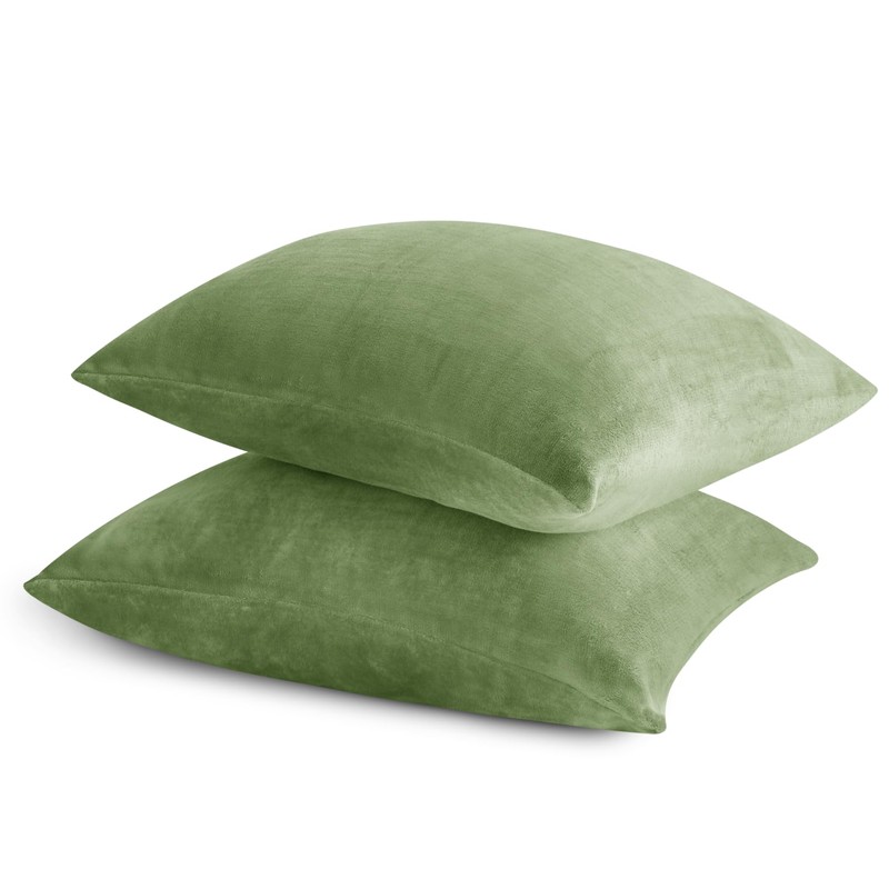 BEDELITE Flannel Pillowcases Standard Set of 2, Super Soft Fleece Pillow Case Cover with Zipper for Bedroom, Sofa, Couch,Luxury Cozy Velvet Pillow Shams for All Seasons(20x26 Inches, Sage Green)