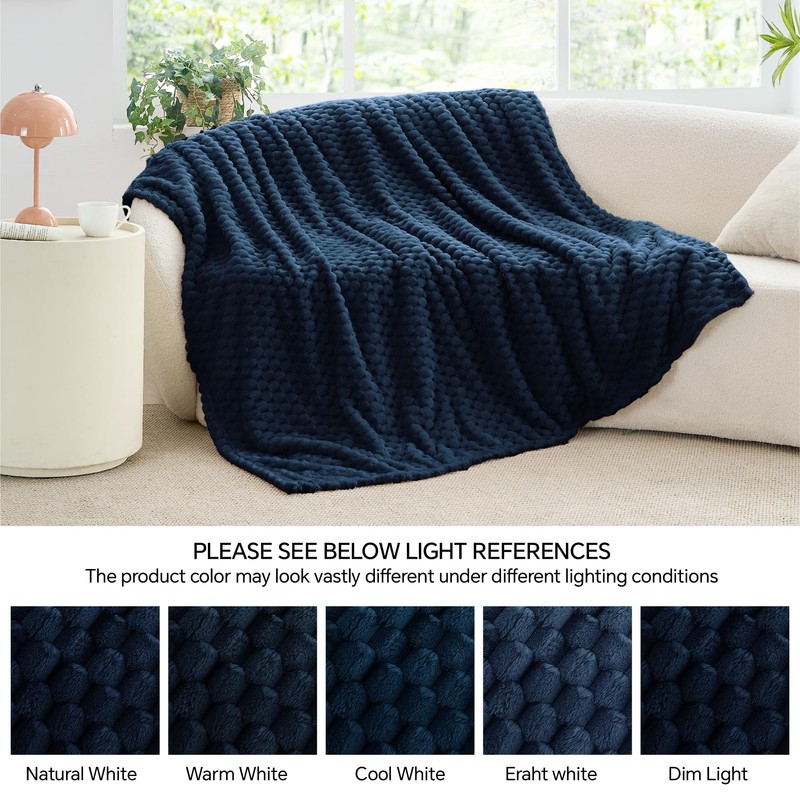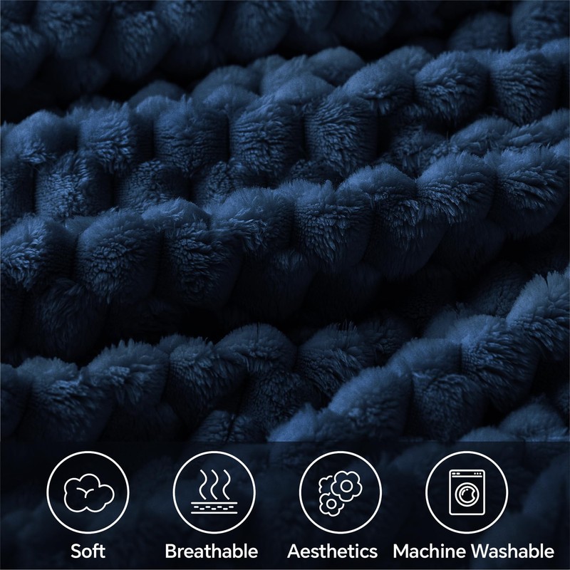 BEDELITE Fleece Throw Blanket for Couch & Bed - 3D Jacquard Decorative Navy Blanket, Super Soft and Cozy Warm Fuzzy Blanket All Seasons Suitable, 50x60Inches