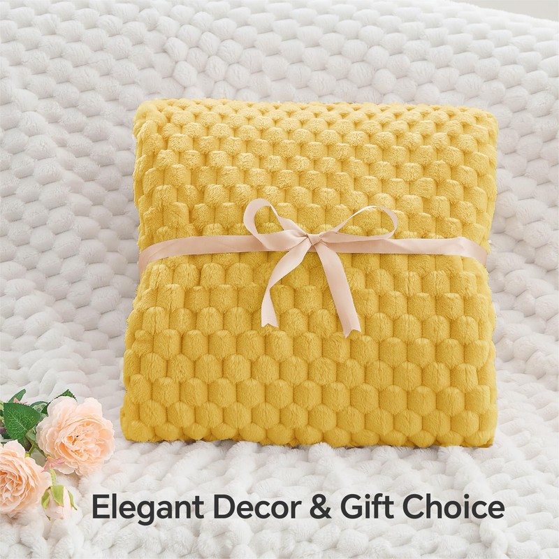 BEDELITE Fleece Throw Blanket for Couch & Bed - 3D Jacquard Decorative Yellow Blanket, Super Soft and Cozy Warm Fuzzy Blanket All Seasons Suitable, 50x60Inches