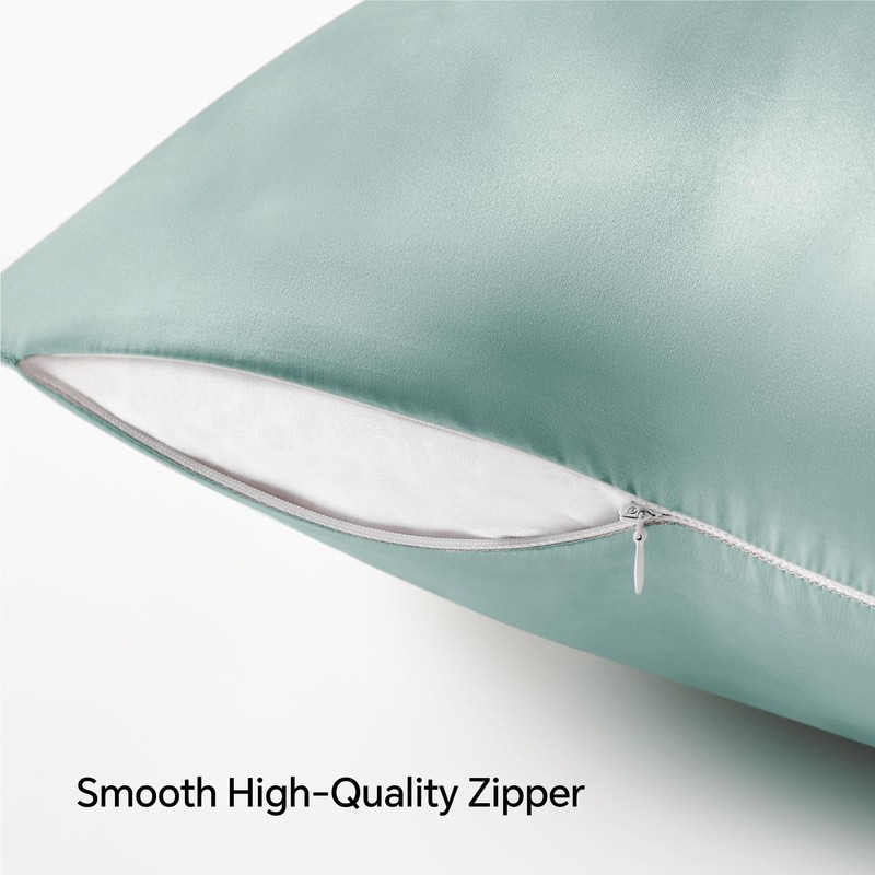 BEDELITE Satin Pillowcase with Zipper 2 Pack, Haze Blue Pillow Cases Standard Size, Super Soft and Cooling Similar to Silk Pillow Cases, Gift for Women Men(20x26 Inches)