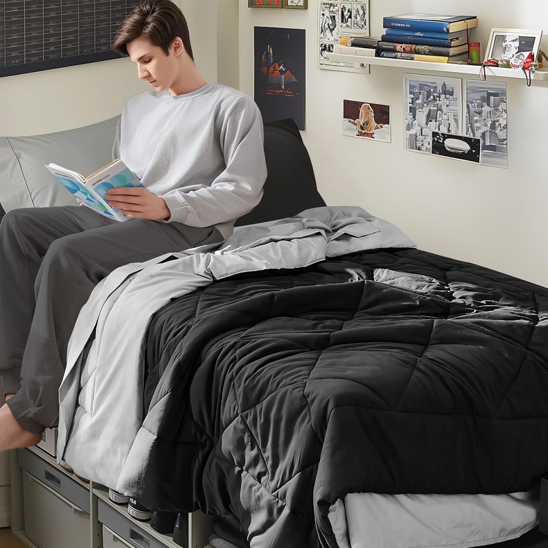 BEDELITE Twin XL Comforter Set 5 Pieces Bed in A Bag - Soft Microfiber Reversible Twin Extra Long Black Bed Set with Comforters, Sheets, Pillowcase & Sham, Cozy Bedding Sets for College Dorm Room