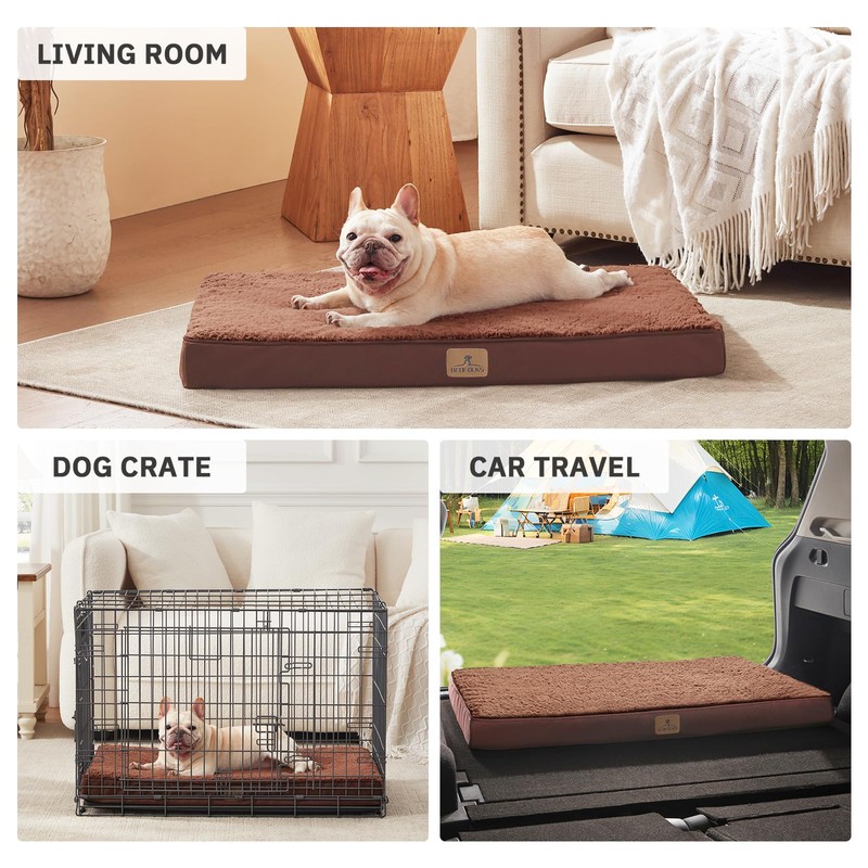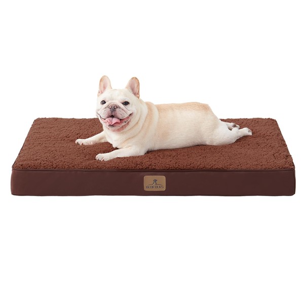 Bedfolks Orthopedic Dog Bed for Large Dogs - Egg Foam Dog Crate Bed with Removable Waterproof Cover, Pet Bed Mat Suitable for Dogs and Pets Up to 65 lbs (36 x 27 x 3 inches, Brown)