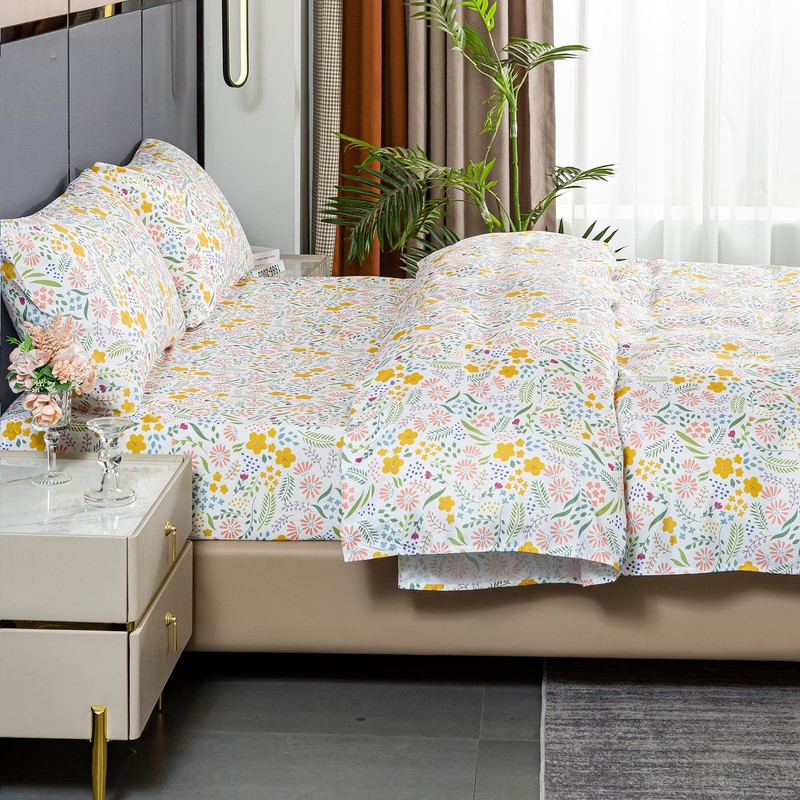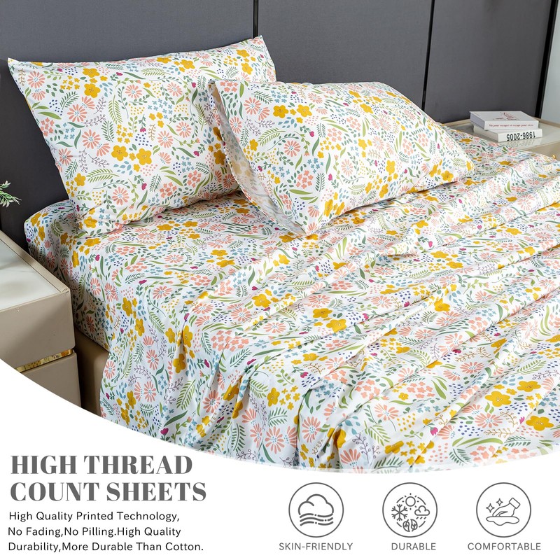 Bedlifes King Sheet Set Floral Sheets King Ultra Soft Breathable Floral Bed S...