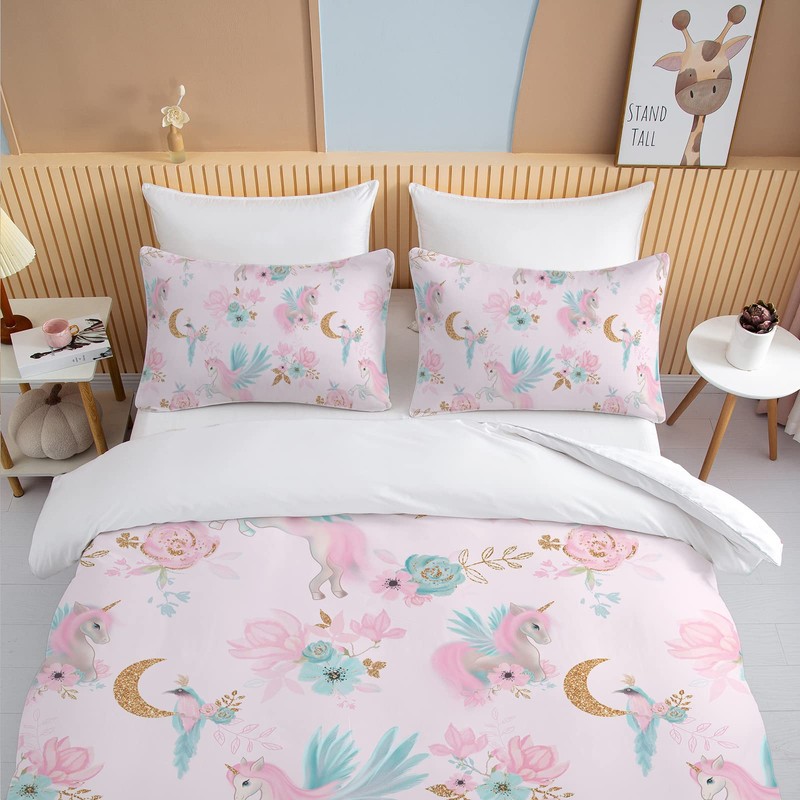 - Original Design Products:We offer you this cute stylish, elegant and high-quality unicorn girl duvet cover because we want you to have a special bedroom and home environment. Designed with unicorn habitat excellence in mind, it's a good gift choice for kids and friends.This toddler bed duvet is vibrant in color and has no fading problem.Good for sensitive skin.
