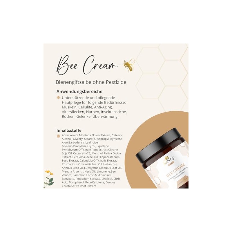 bedrop Bee Venom Ointment High Dose (Cooling & Warming) - Bee Cream Bee Venom Cream with Beeswax and 8 Herbal Extracts, such as Aloe Vera, Marigold, Eucalyptus and Horse Chestnut 100 g