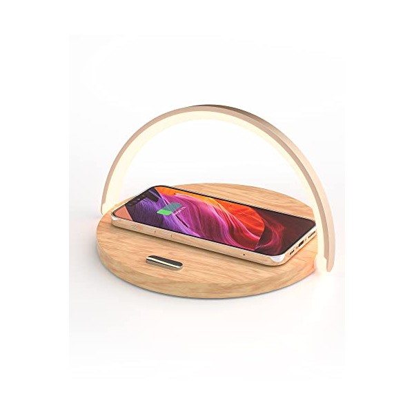 Bedside Lamp with Wireless Charging, COLSUR Table Lamp with Touch Control, 3 Brightness Levels, Cell Phone Holder and Eye-Caring Night Light for Kids Adult Home Bedroom Office