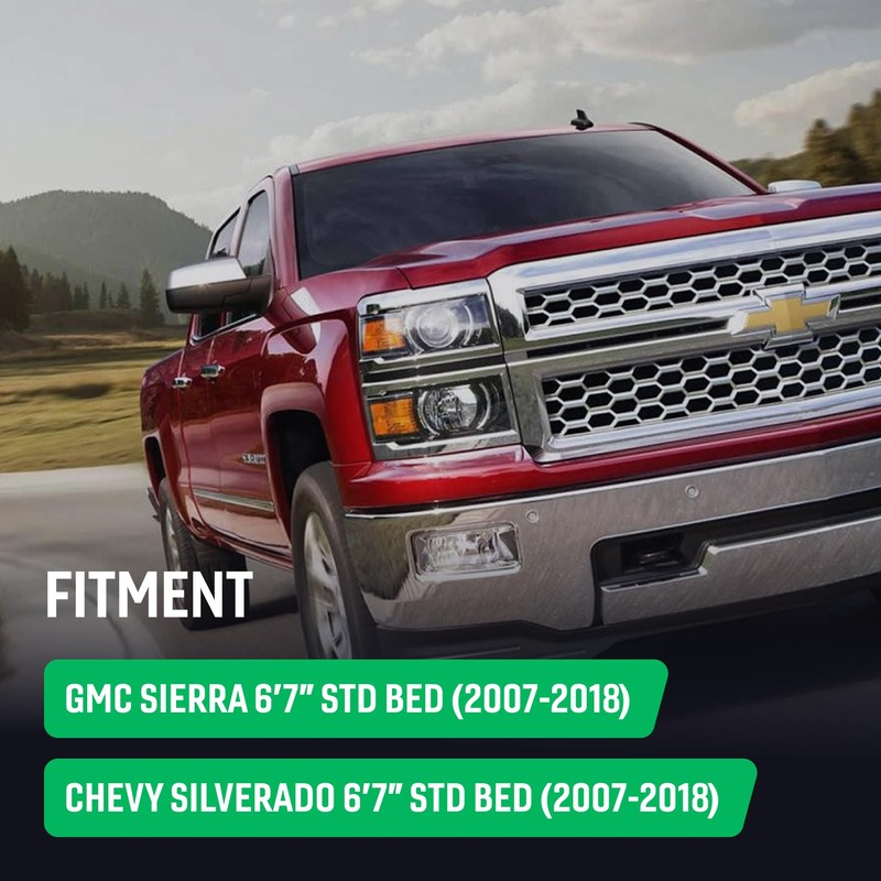 - Vehicle Compatibility – Fits 2007–2018 Chevrolet Silverado 1500 and GMC Sierra 1500 models with a 6ft7in standard bed; designed for front driver side installation.