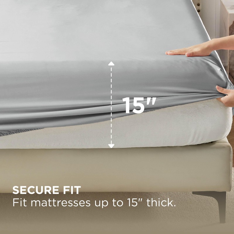 - Tailored For Mattresses: This sheet set includes a fitted sheet with a 15-inch deep pocket to accommodate most mattresses, ensuring a smooth, secure fit