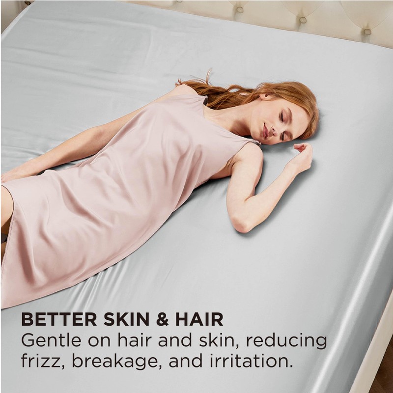 Bedsure Bedsure Satin Fitted Sheet Full Size - Silk Bed Sheet, Luxury & Ultra Soft, Non-Fading & Wrinkle Free, Good for Hair & Skin (Silver Grey, 54x75+15 Inches, 1 Piece)