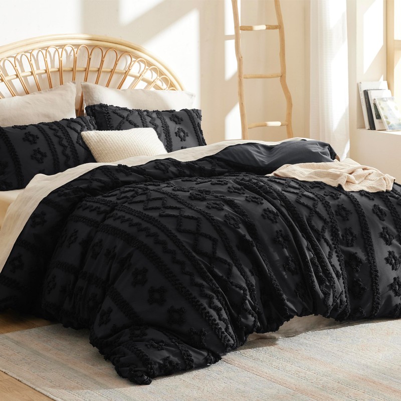 Bedsure Boho Duvet Cover King Size - Tufted King Duvet Cover Set for All Seasons, 3 Pieces Soft Shabby Chic Embroidery Boho Bedding, Comforter Not Included (Black, 104" x 90")