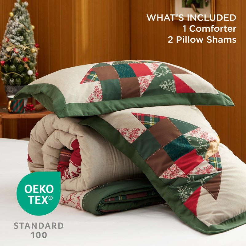 - Festive Design: This eye-catching set features a grand Christmas tree adorned with a patchwork of festive patterns and colors, creating a striking centerpiece for your bedroom decor.