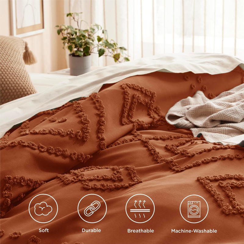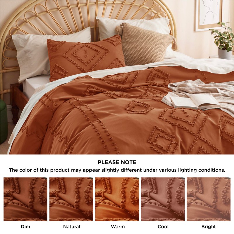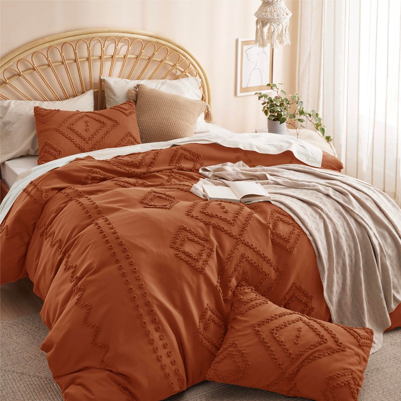 Bedsure Duvet Cover King Size - Boho Duvet Cover Sets for All Seasons, 3 Pieces Chic Geometric Tufted Home Bedding, Comforter Not Included (Terracotta, King, 104" x 90")