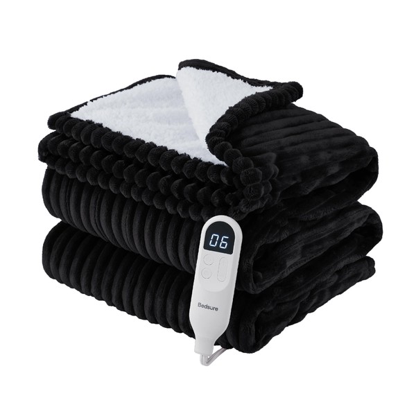 Bedsure Electric Blanket Full Size - Soft Ribbed Flannel Heated Blanket with 6 Heat Settings, 10 Time Settings, 8 hrs Timer Auto Shut Off, Warm Gift for Grandma (72x84 inches, Black)