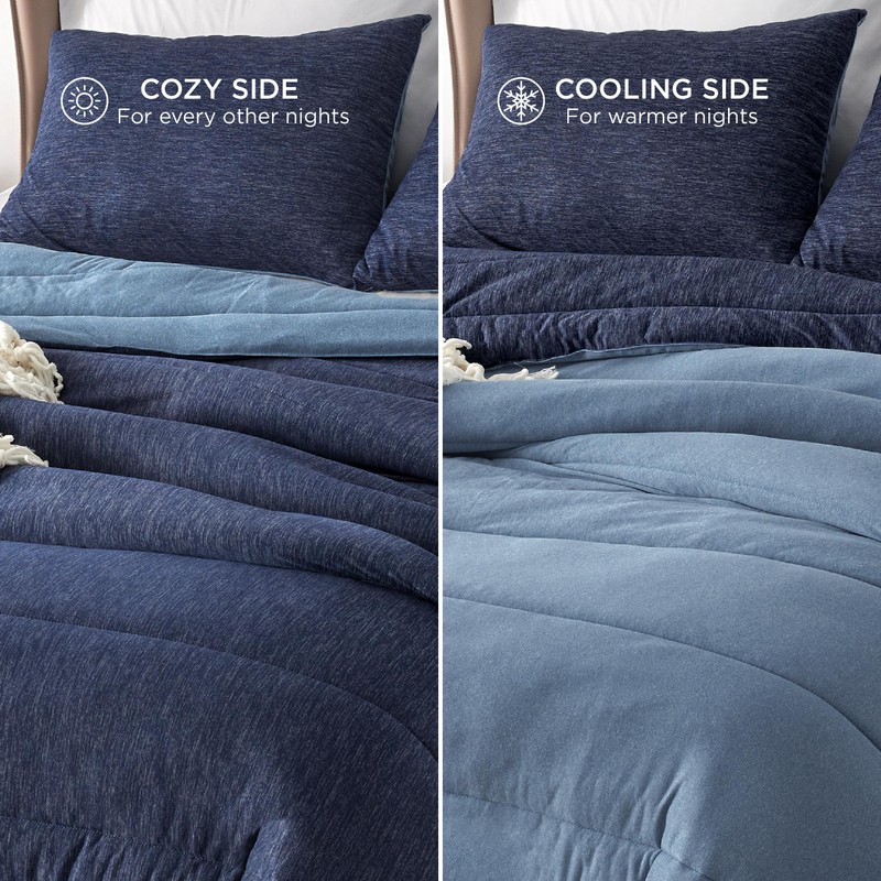 Bedsure Full Comforter Set - Cooling and Warm Bed Set, Navy Blue Reversible All Season Cooling Comforter, 3 Pieces, 1 Full Size Comforter (82"x86") and 2 Pillow Cases (20"x26")