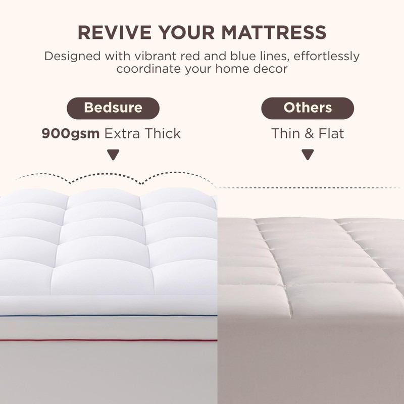 Bedsure Queen Mattress Topper, 900GSM Thick Soft Pillow Top Mattress Topper w...