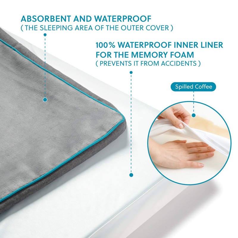 - 100% Waterproof Design - Equipped with a full-coverage inner liner to help protect the memory foam from accidents and a water-resistant cover