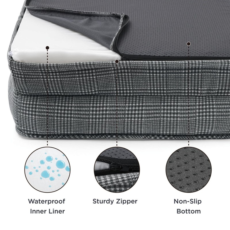 Bedsure Orthopedic Dog Bed for Medium Dogs - Waterproof Dog Sofa Beds Medium, Supportive Foam Pet Couch Bed with Removable Washable Cover, Waterproof Lining and Nonskid Bottom, Black Checks