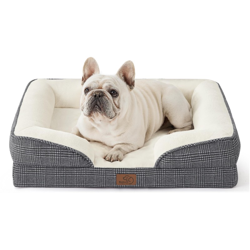 - Orthopedic Support: Our orthopedic dog sofa is designed to give your pet unparalleled support for a deep, dreamy sleep. High-density egg-crate foam helps distribute weight evenly and provides the perfect amount of pressure relief and joint support.