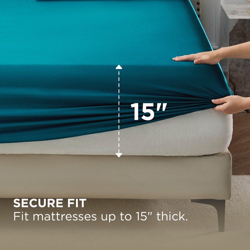 - Tailored For Mattresses: This sheet set includes a fitted sheet with a 15-inch deep pocket to accommodate most mattresses, ensuring a smooth, secure fit