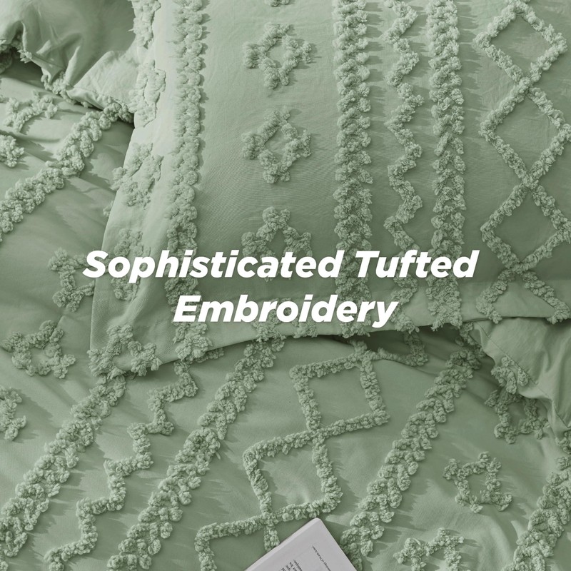 • Exceptional Tufted Embroidery: Each tuft is meticulously crafted through a 30-step process, creating a unique 3D texture that adds depth and visual interest to your bedroom decor. This elegant detail enhances the overall look and also makes it a delightful gift for any occasion.