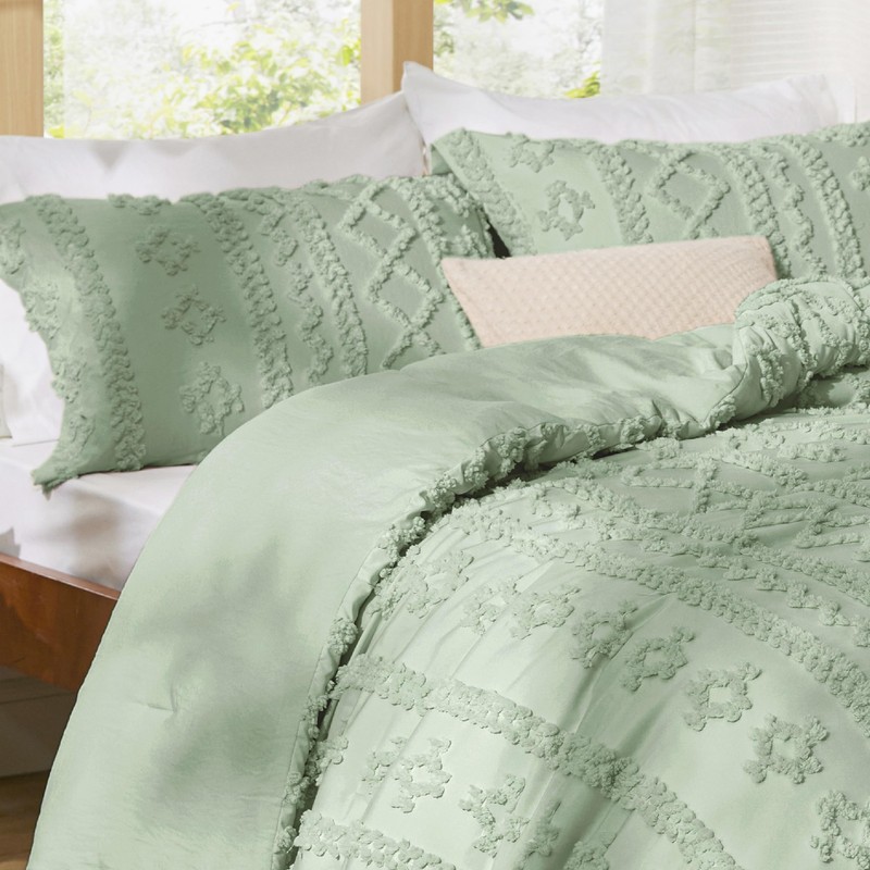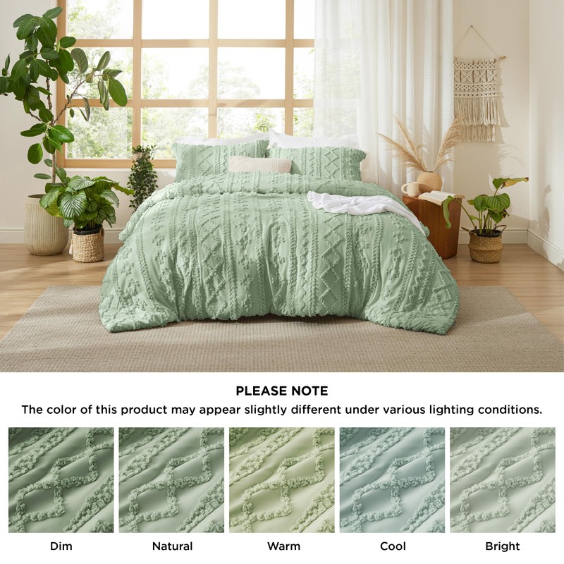 Bedsure Tufted Boho Comforter Set Twin Size - Sage Green Boho Bed Set, Gentle...