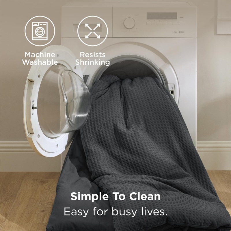 - VINTAGE WAFFLE DESIGN: The classic waffle weave pattern adds elegant texture and visual interest to any bedroom. This timeless design blends seamlessly with various decor styles while the charcoal color easily pairs with both solid and printed bedsheets